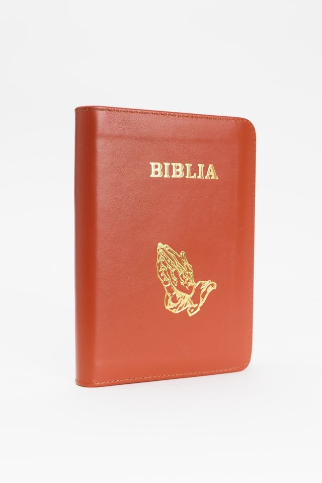 Biblie format mediu, copertă în piele și fermoar, cu margini aurii și index